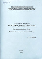 Освітній процес: методика, досвід, проблеми. № 2 (148) 2018 р. [Текст] : навч.-метод. зб. / [гол. ред. М. І. Литвиненко] ; М-во оборони України, Харків. нац. ун-т Повітряних Сил ім. І. Кожедуба. – Харків : ХНУПС, 2018. – 83 с. – Вих. 4 рази на рік. – Вид. з 1978 р. – З 1994-2015 – Навчально-виховний процес. – Бібліогр.: наприкінці ст.