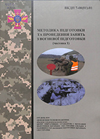 Методика підготовки та проведення занять з вогневої підготовки [Текст] : ВКДП 7-00(01).01 : військ. навч.-метод. публ. командирам (інструкторам) / Центр операт. стандартів і методики підгот. ЗСУ ; НАСВ ім. П. Сагайдачного. – [Київ, 2020]. – 202 с. : іл., табл. – Бібліогр.: с. 199-202 (49 назв). – У вих. дан.: квітень 2020 (на обкл. грудень 2019). – Назва на обкл.: Методика підготовки та … (частина 1). – Дод. 1-6.