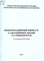Інформаційний випуск з авіаційних подій та інцидентів за 2 півріччя 2017 року [Текст] /М-во оборони України, Повітряні Сили Збройних Сил України. – [Б. м.], 2018. – 76 с. : табл. |